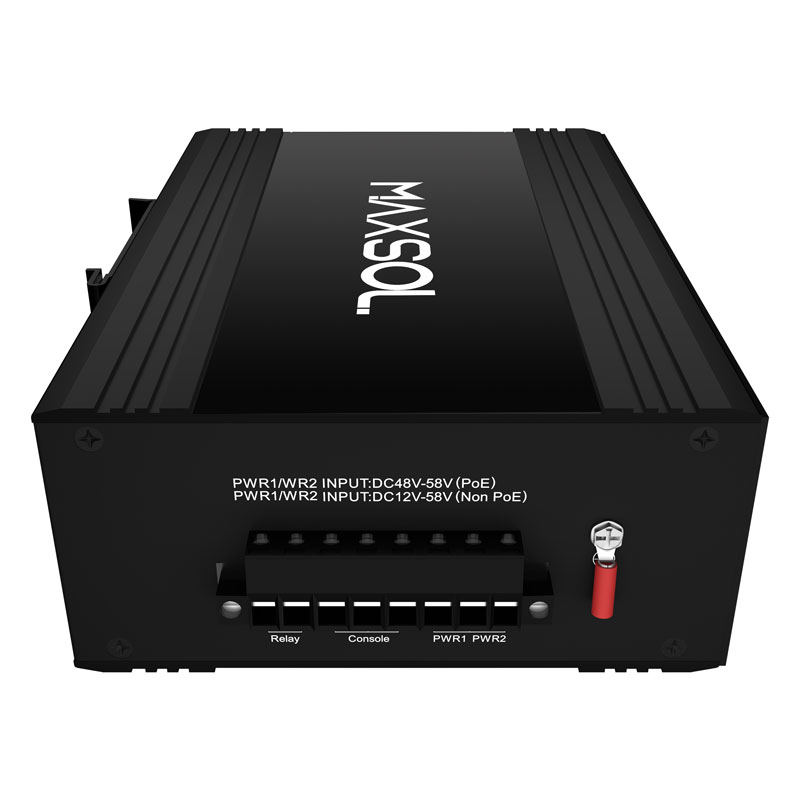 - Non-blocking architecture with Marvell chipset, DIN-rail mount, DC 48–58V wide voltage input